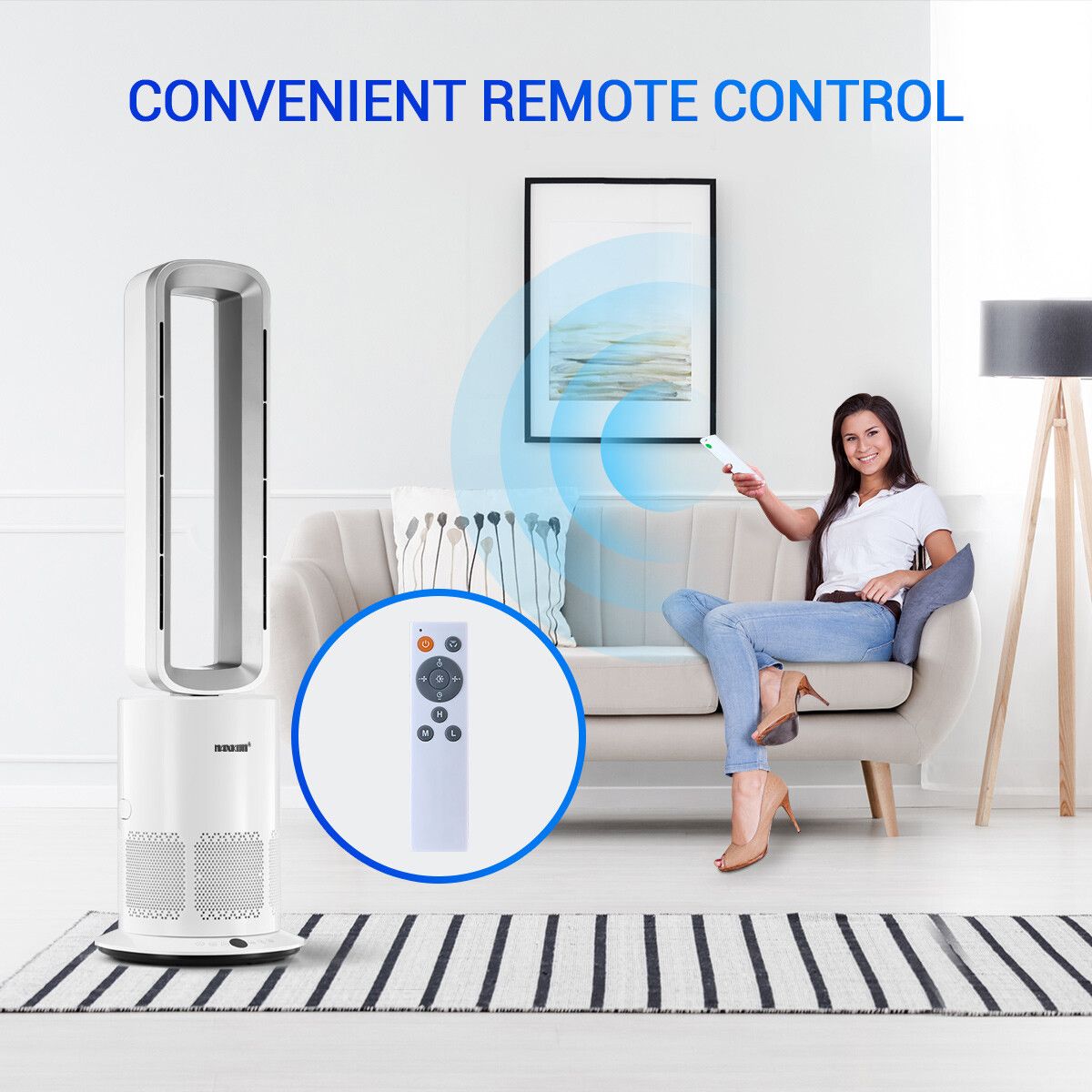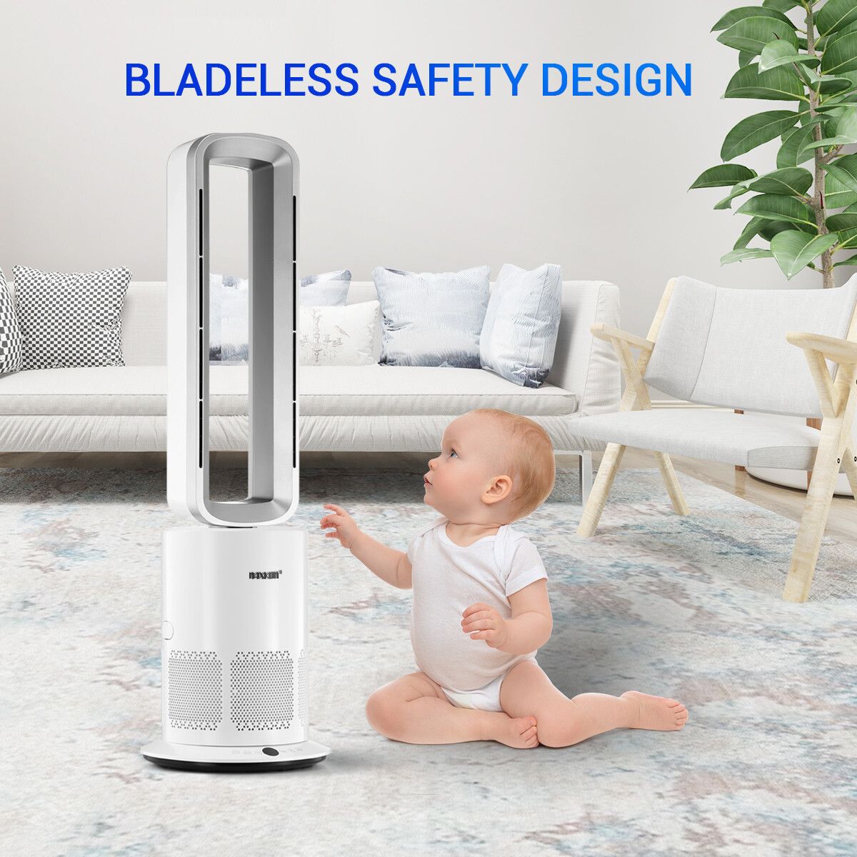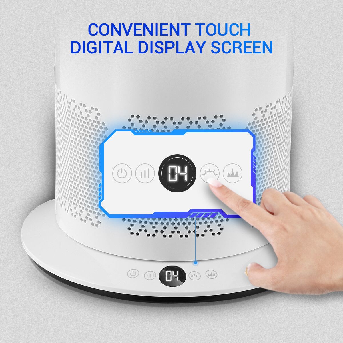 3 In 1 Bladeless Fan Heater Electric Tower Cool Air Hot HEPA Filter Purifier Remote Touch 9H Timer 80 Degree Oscillating LED Office Bedroom Floor Standing