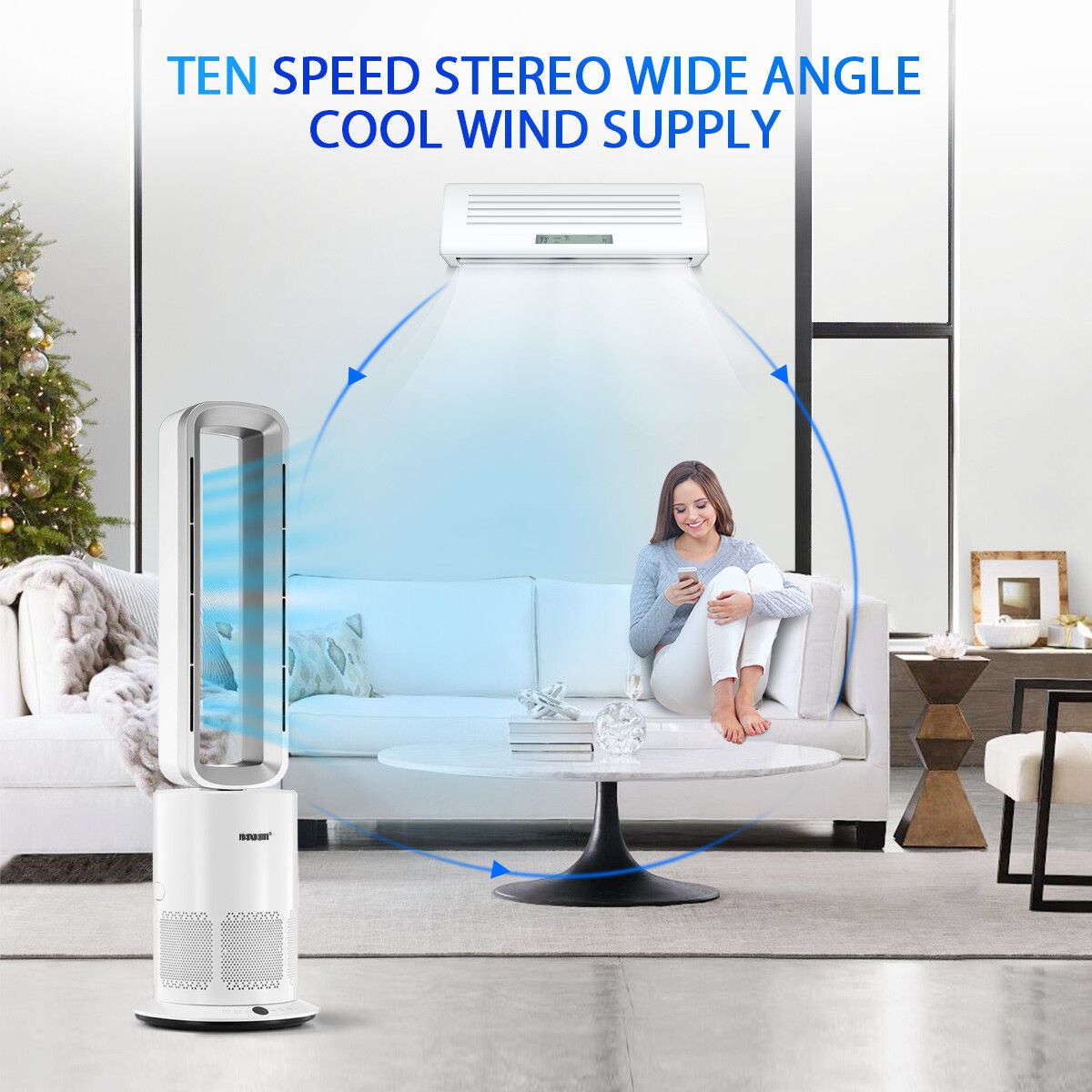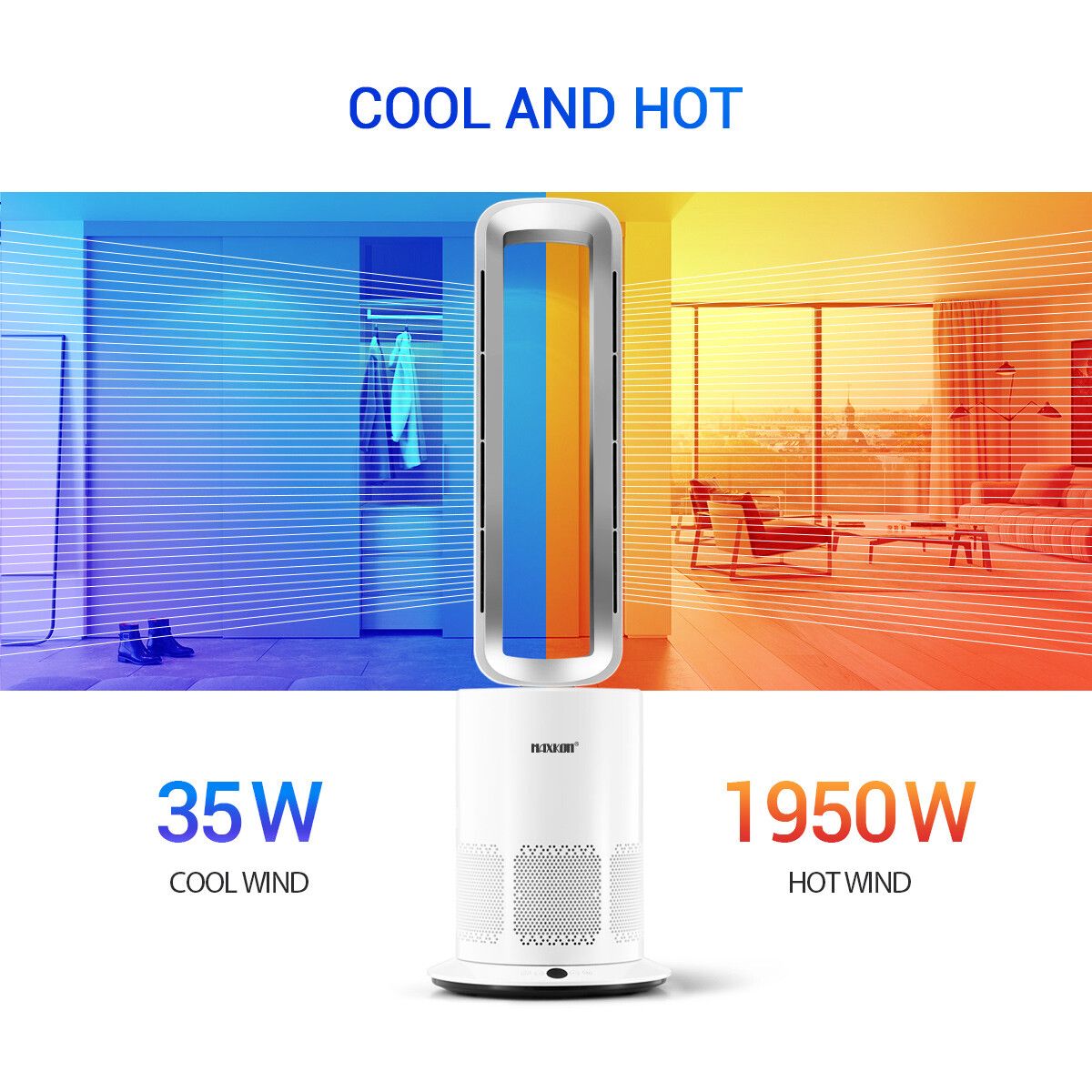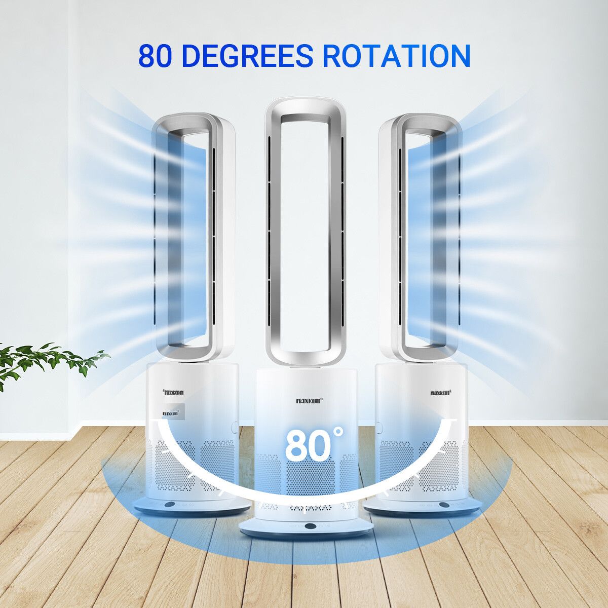 3 In 1 Bladeless Fan Heater Electric Tower Cool Air Hot HEPA Filter Purifier Remote Touch 9H Timer 80 Degree Oscillating LED Office Bedroom Floor Standing